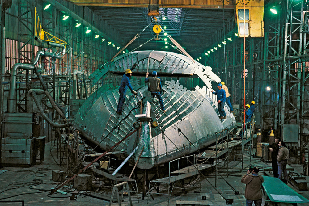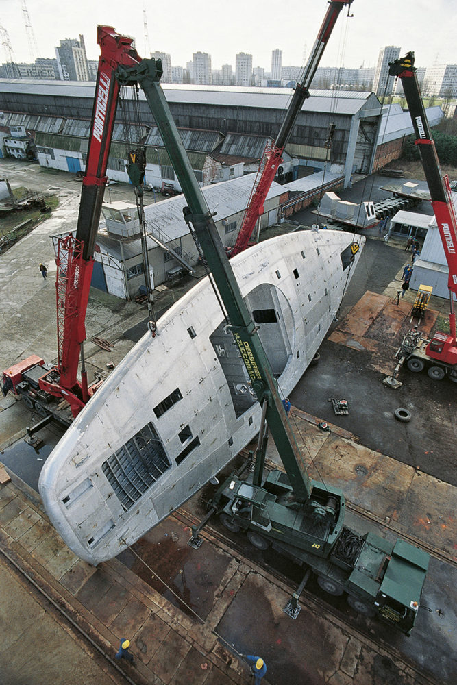 Architects O.Petit and L.Bouvet. Engineers M.Franco and Y.Mégret. SFCN shipyard led by Jeanne-Marie Baudron. An aluminum ship, 36 m long, 10 m wide.