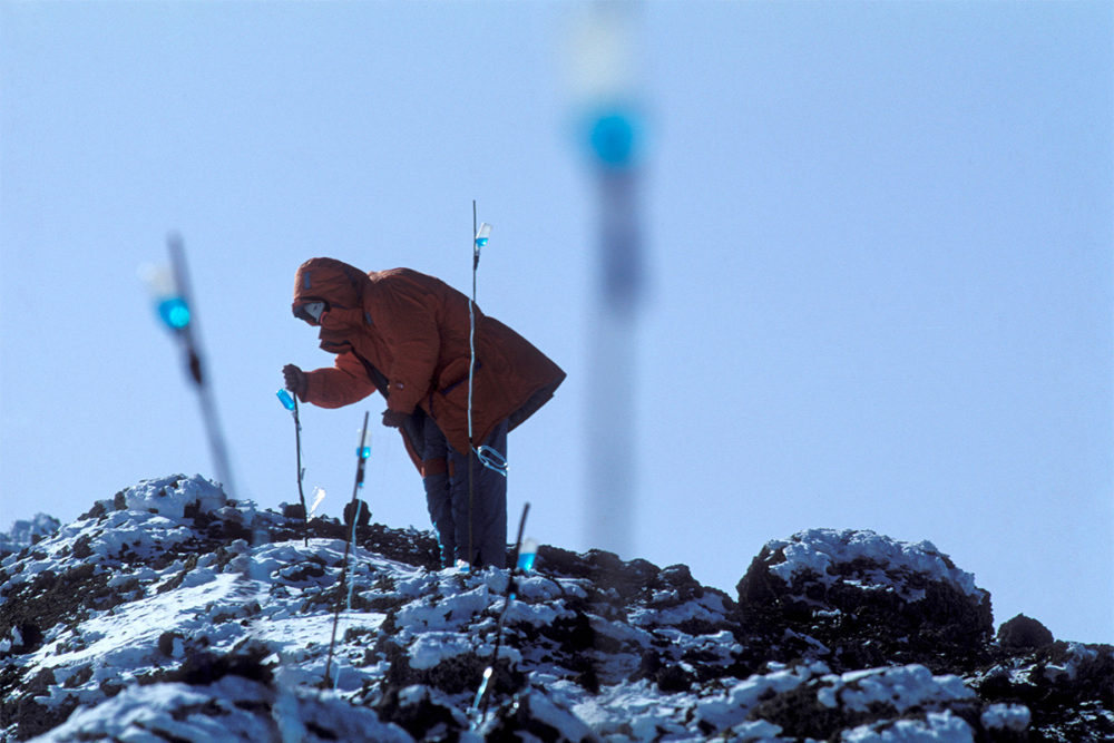 Unfortunately, it is covered with an almost insuperable pack ice. The Antarctica has to make its way through the ice for more than three weeks before reaching the foot of the volcano. After ten days of climbing to the top of the crater, a new disappointment awaits the scientists. The crater is gutted by explosions and collapses. Deep down, the lava lake is inaccessible. Analytical equipment has descended into the crater to collect gas samples, but it will be impossible to get to the bottom of the well.