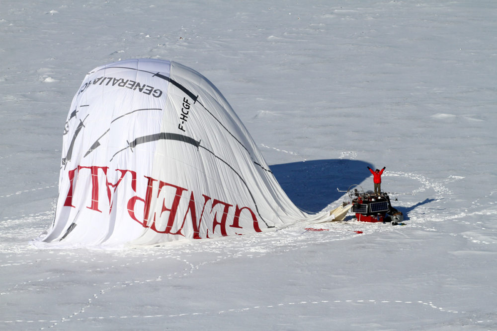 On April 5, 2010 at 3 am, the router Luc Trullemans gives the green light weather. JLE takes off from Spitzbergen at the command of a « rozière », a mixed helium / hot air balloon. Arriving in the vicinity of the North Pole, a storm will drive the balloon to Siberia where it will land after 5 days of a tough journey: most often without visibility, power failure, flight 200 m from the pack ice, risk of grounding, insomnia, fire on a burner, cerebral edema at 5000 m altitude to join Siberia!