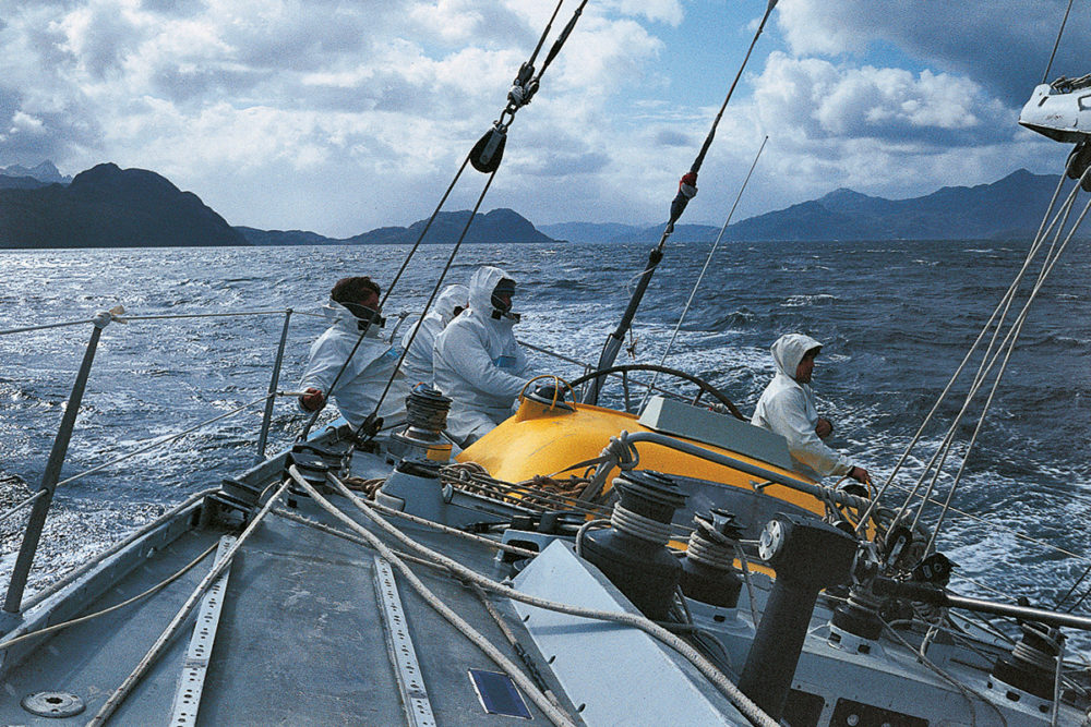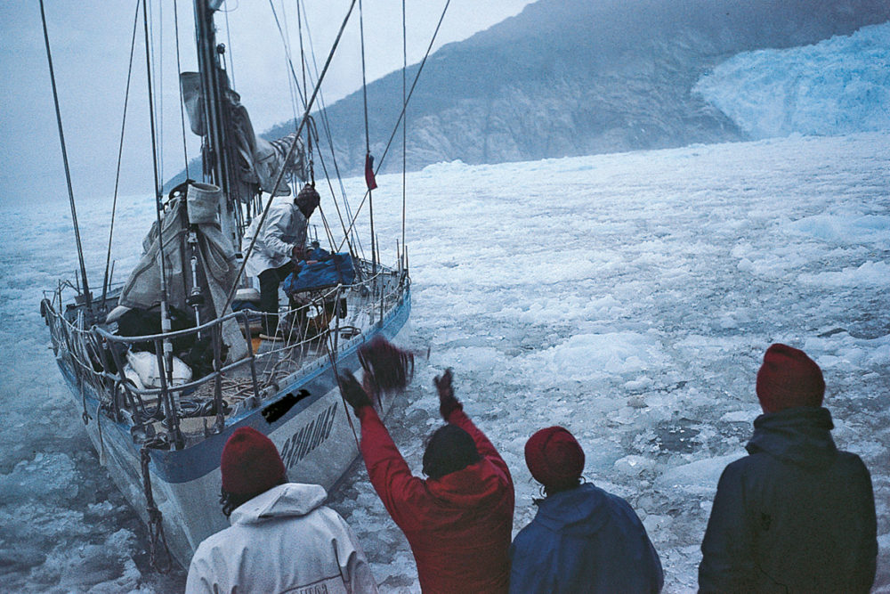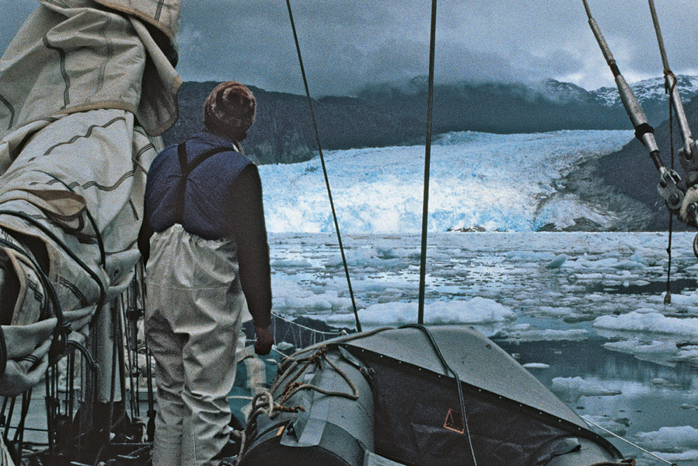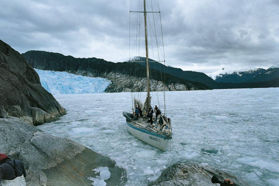 Jean-Louis Etienne made his first expedition to the mountains of Patagonia in 1975. In 1982, he returned on board Gauloise III for a new sea and mountain expedition. The goal: the ascent of Riso Patrón, a summit accessible only by the sea. There is only one photo of this summit, because the winds coming from the Pacific constantly darken the sky. Stuck in bad weather for ten days, the team does not reach the summit, but nevertheless makes the first crossing of Hielo Continental, a huge glacier separating the Pacific Ocean from the Andes.